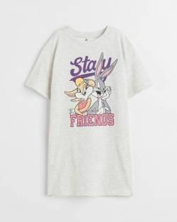 Vestido playero oversize en punto suave de algodón. Modelo con diseño estampado y borde acanalado alrededor del cuello. Hombros caídos y aberturas en los laterales de la bastilla.